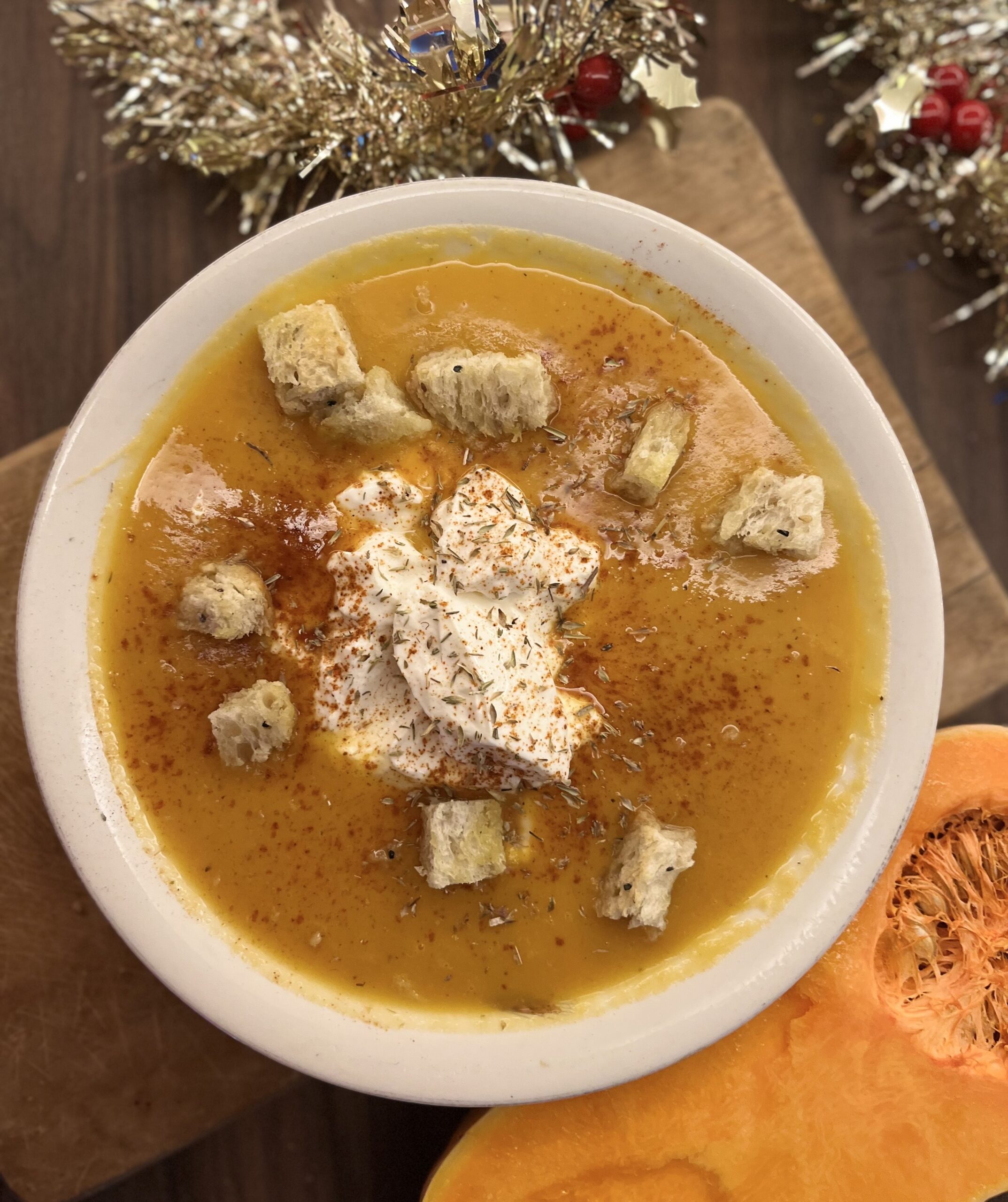 Σερβίρουμε με μια πηγή πρωτεΐνης όπως γιαούρτι ή τυρί και σπιτικά κρουτόν ή ψωμάκι.