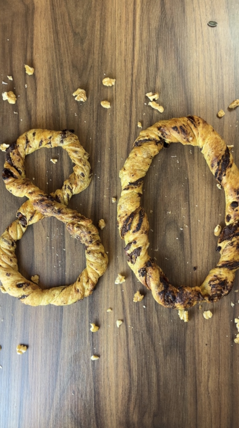 - 6. Ξεκινάμε να στριφογυρνάμε την ζύμη μέχρι να σχηματίσουμε ένα σπιράλ.