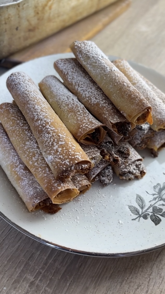 Τυλίγουμε το φύλλο και σχηματίζουμε μικρά, κομψά μπαστουνάκια.