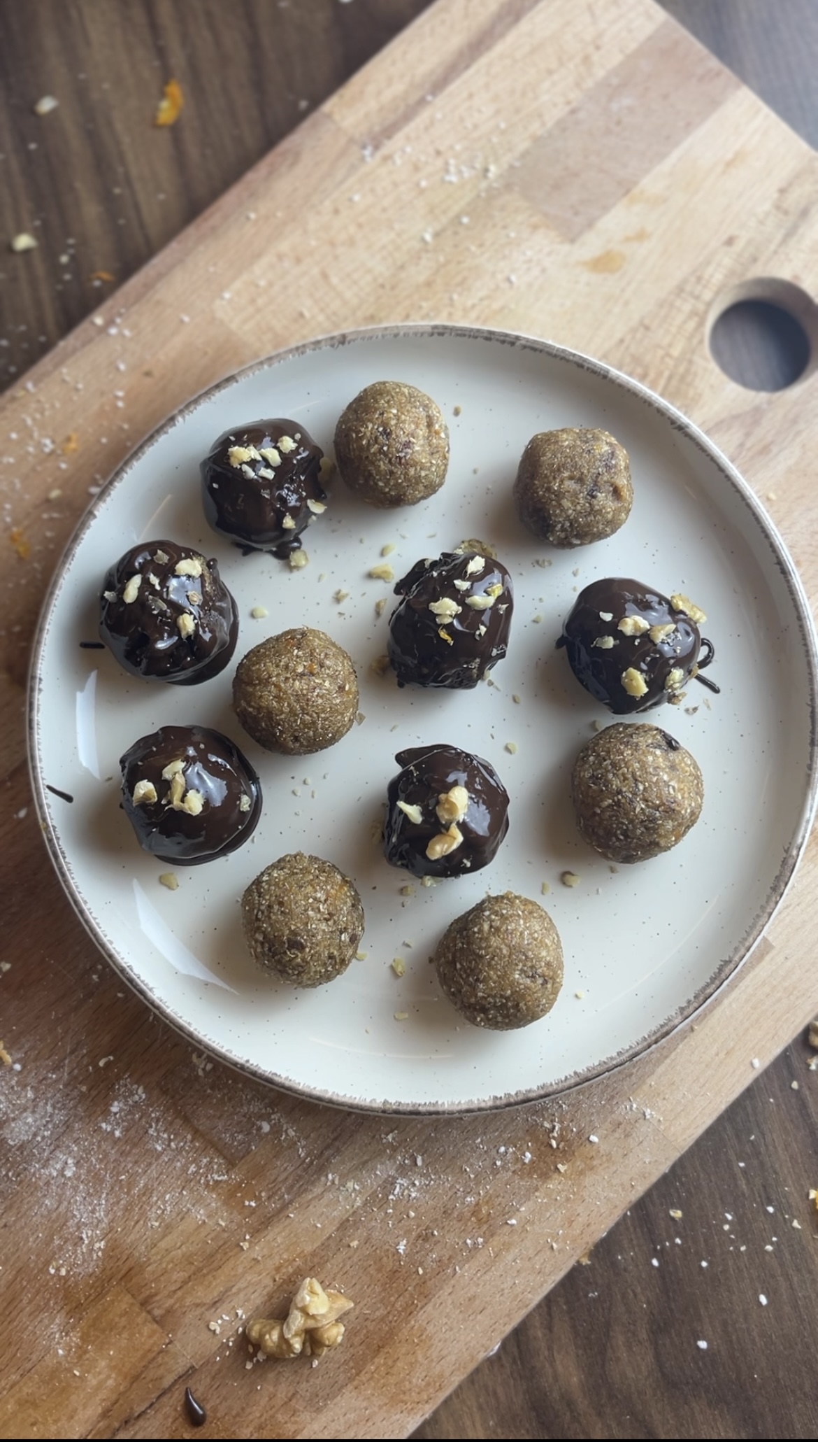 4️⃣Προαιρετικά τα βουτάμε σε λιωμένη κουβερτούρα και πασπαλίζουμε με λίγα τριμμένα καρύδια.