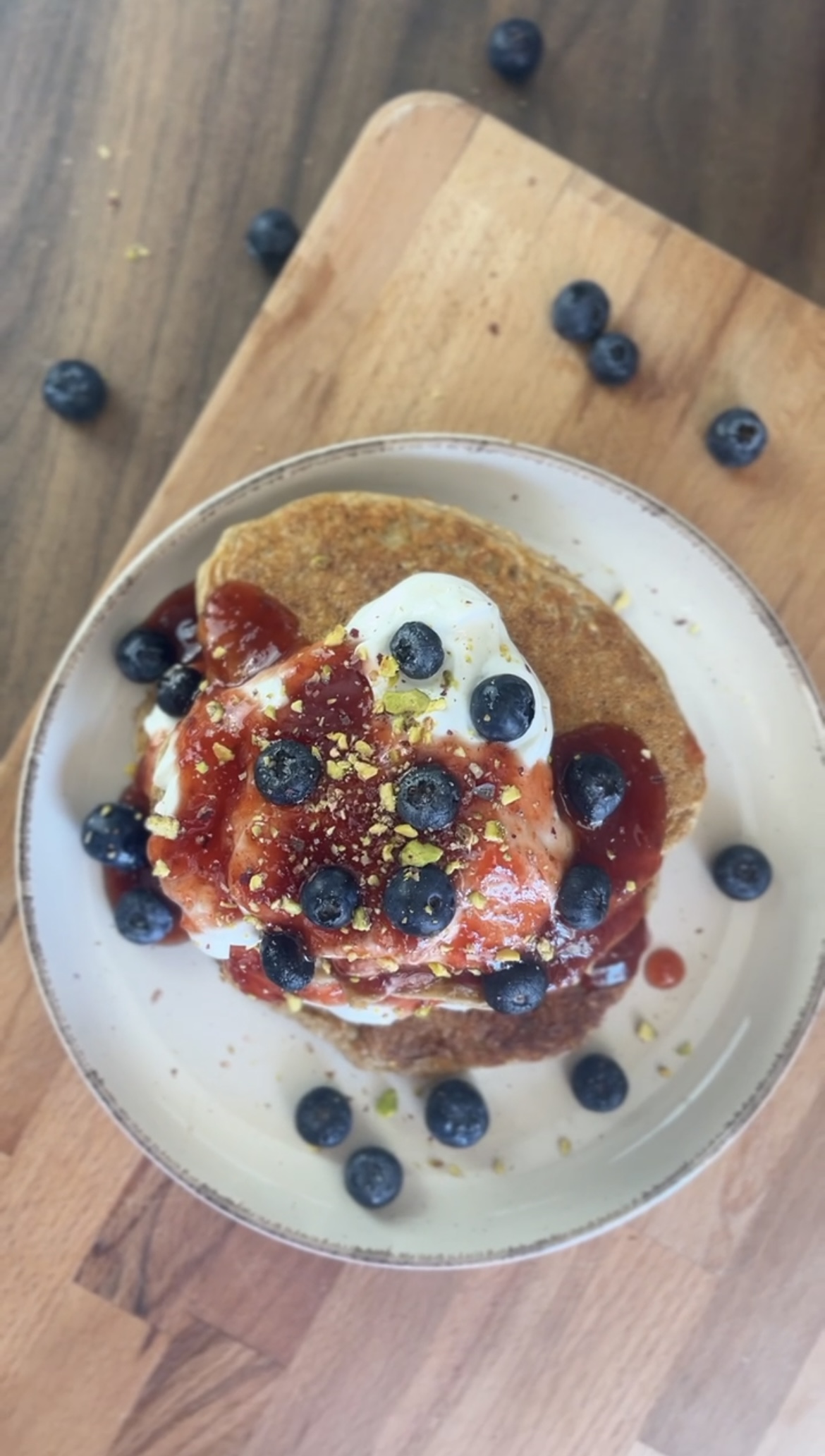 🥞🫐Πανεύκολα και υγιεινά pancakes υψηλά σε πρωτείνη έτοιμα στο σπίτι σε λίγα λεπτά.